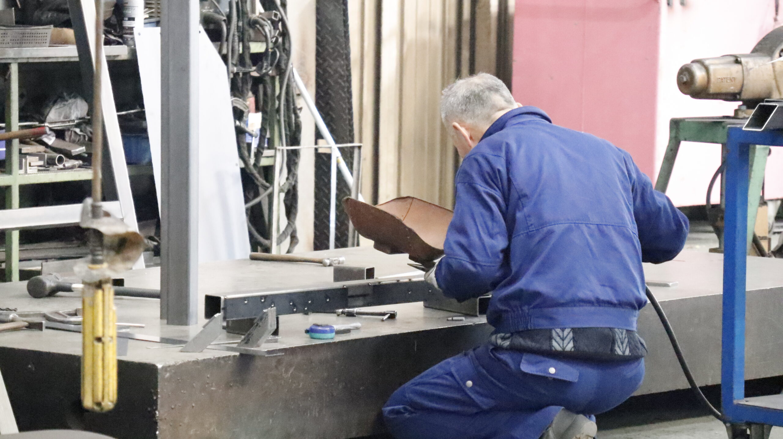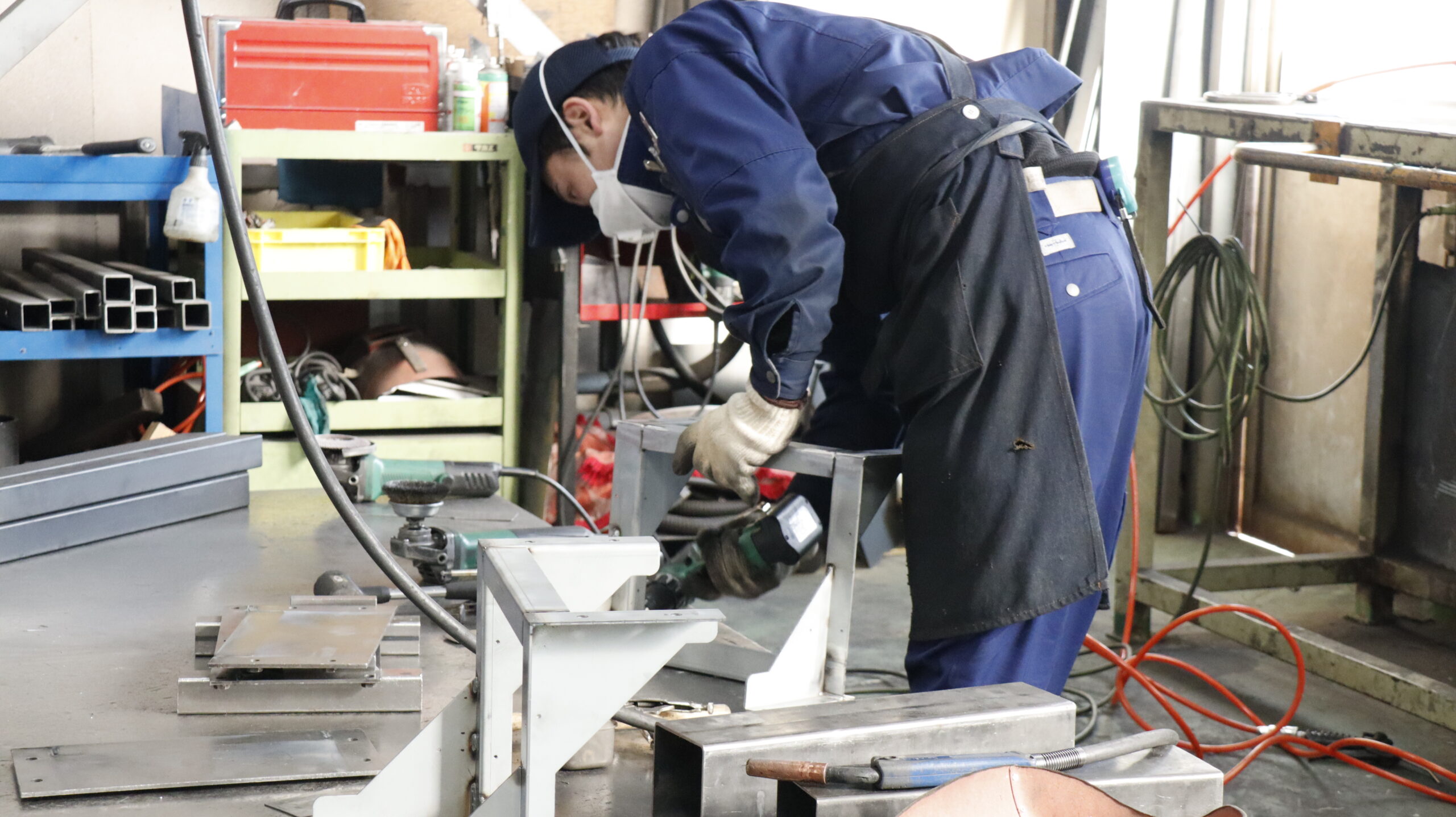 ③溶接工程:鉄・ステンレス・アルミなどの板金部品の溶接加工や各種パイプやアングルなどを使用したフレームの溶接組み立てを行います。